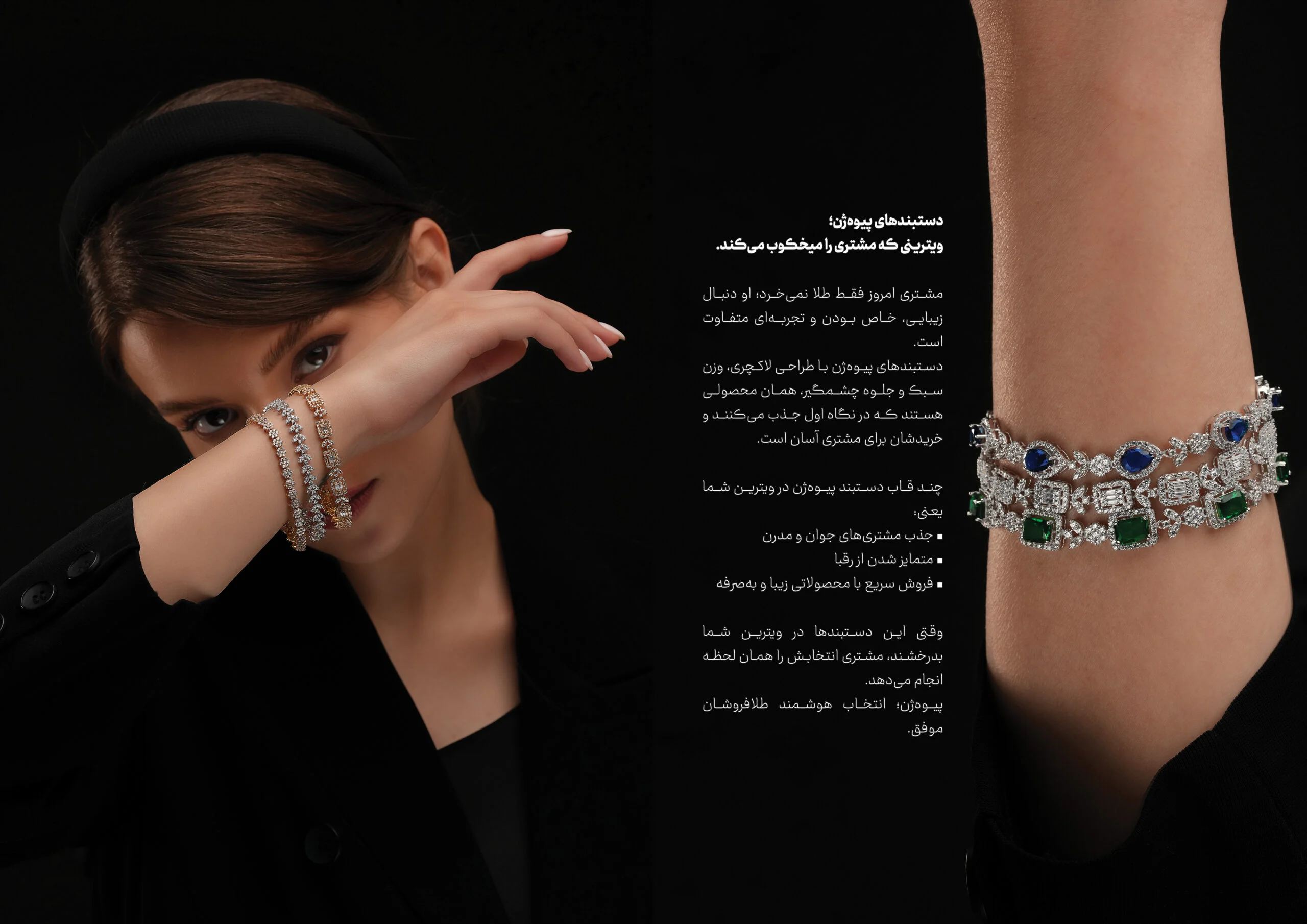 مشتری امروز فقط طلا نمی‌خرد؛ او دنبال زیبایی، خاص بودن و تجربه‌ای متفاوت است.دستبندهای پیوه‌ژن با طراحی لاکچری، وزن سبک و جلوه چشمگیر، همان محصولی هستند که در نگاه اول جذب می‌کنند و خریدشان برای مشتری آسان است.