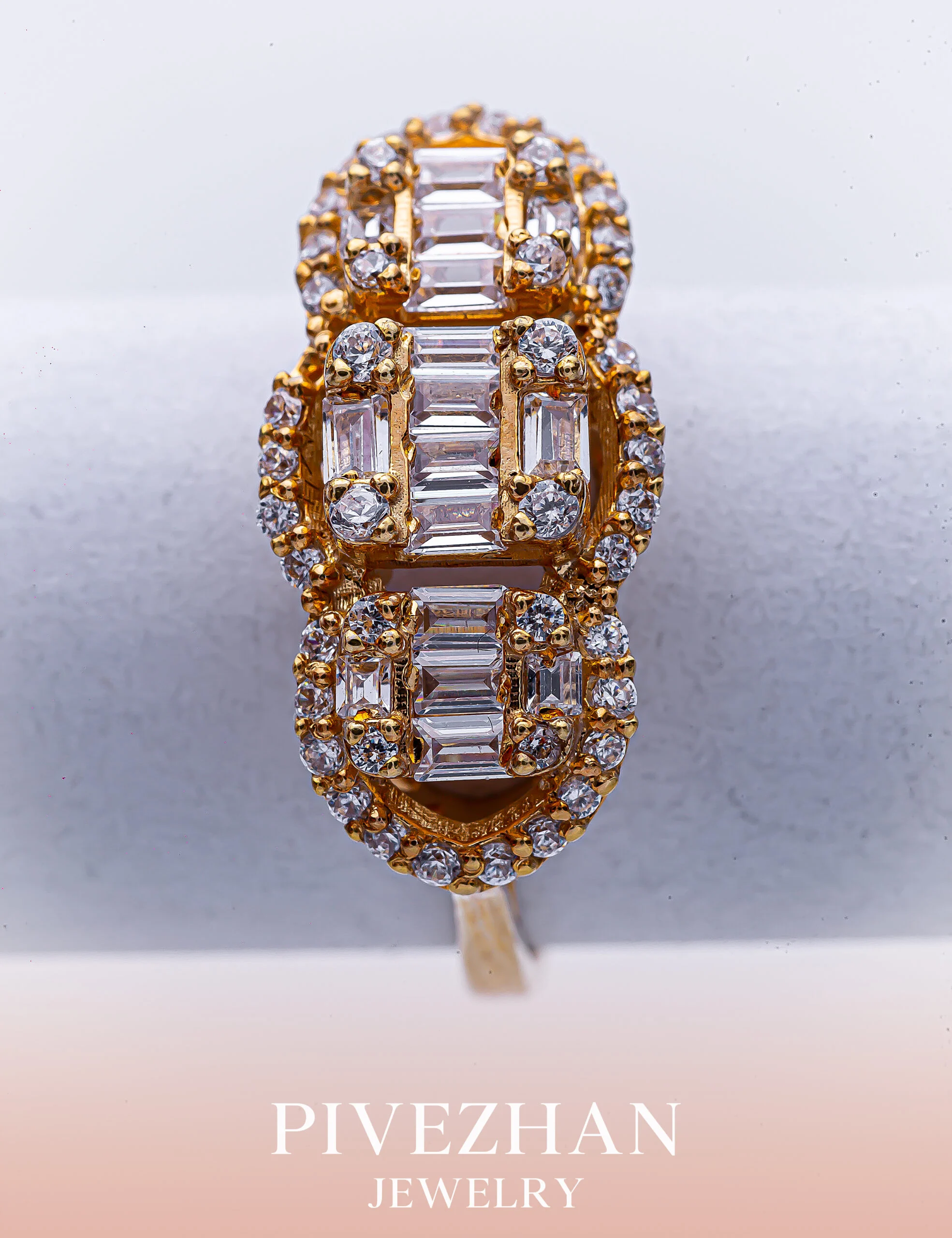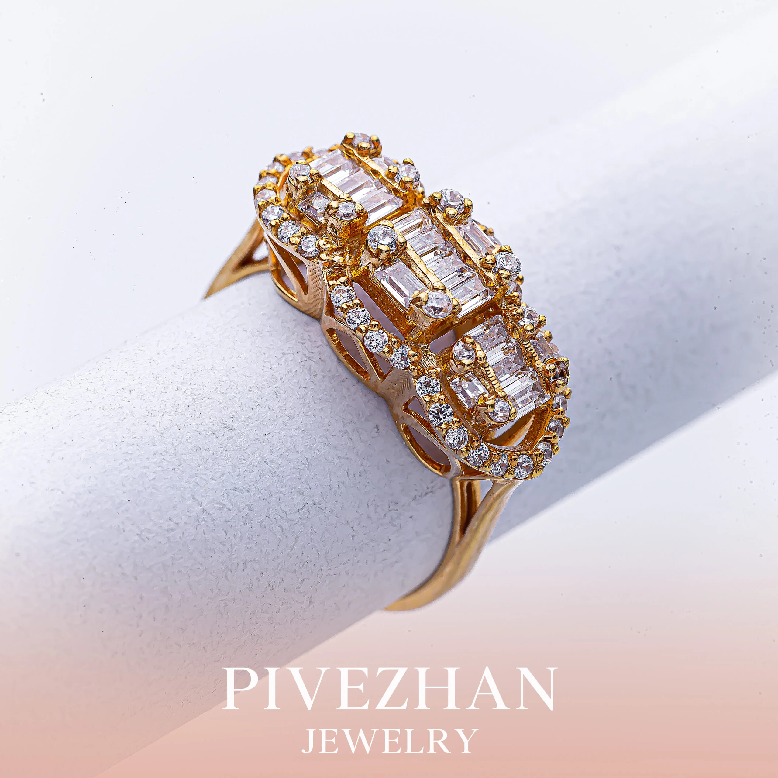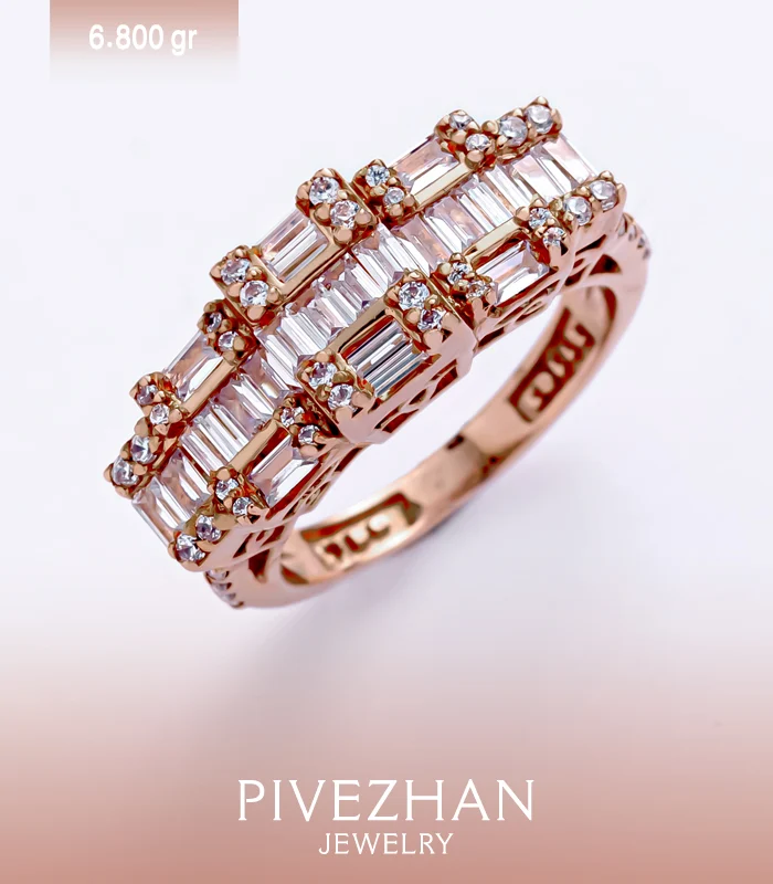 این انگشتر طلای بر پایه جواهر با طراحی بینظیر و چشمنواز، ترکیبی از جواهر لوکس و ظرافت مدرن است که هر نگاهی را به خود خیره میکند. این حلقه بر پایه جواهر، با نگینهای اتمی درخشان و باگت که به دقت چیده شدهاند، جلوهای باشکوه و درخشان دارد. طرح آن با استفاده از میکروپاوهای از نگینهای درخشان اتمی، یک شاهکار هنری را به نمایش میگذارد.این انگشتر زنانه نه تنها یک زیورآلات کلاسیک است، بلکه با طراحی منحصربهفرد خود، انتخابی ایدهآل برای جواهر عروسی مدرن یا یک هدیه ارزشمند به شمار میرود. اگر به دنبال یک انگشتر مجلسی هستید که شخصیت و سبک شما را به بهترین شکل نشان دهد، این انگشتر درخشان و خیرهکننده همان چیزی است که میخواهید.