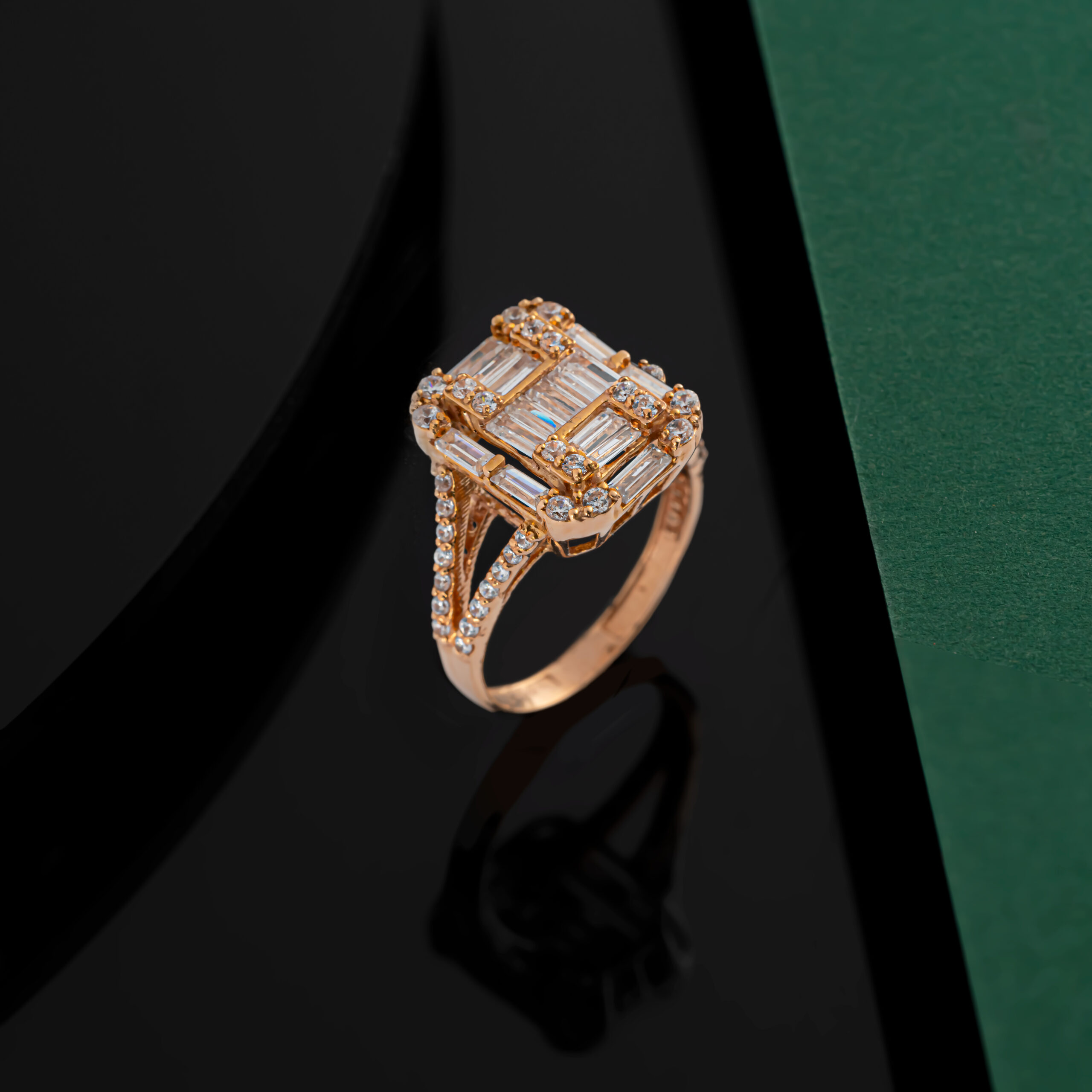 انگشتری خیرهکننده و مجلسی که زیبایی و درخشش را به دستان شما هدیه میدهد. این انگشتر با طرح مدرن ، انتخابی بینظیر برای خانمهایی است که به دنبال جواهرات لوکس و چشمنواز میگردند. طراحی خاص و منحصر به فرد این انگشتر با ترکیبی از نگینهای اتمی باگت و نگین اتمی درخشان، جلوهای درخشان و خیرهکننده ایجاد کرده که هر نگاهی را به خود جذب میکند. این محصول با دقت و ظرافت تمام ساخته شده تا در مهمانیها و مجالس، استایلی شیک و مجلسی را برای شما به ارمغان بیاورد.