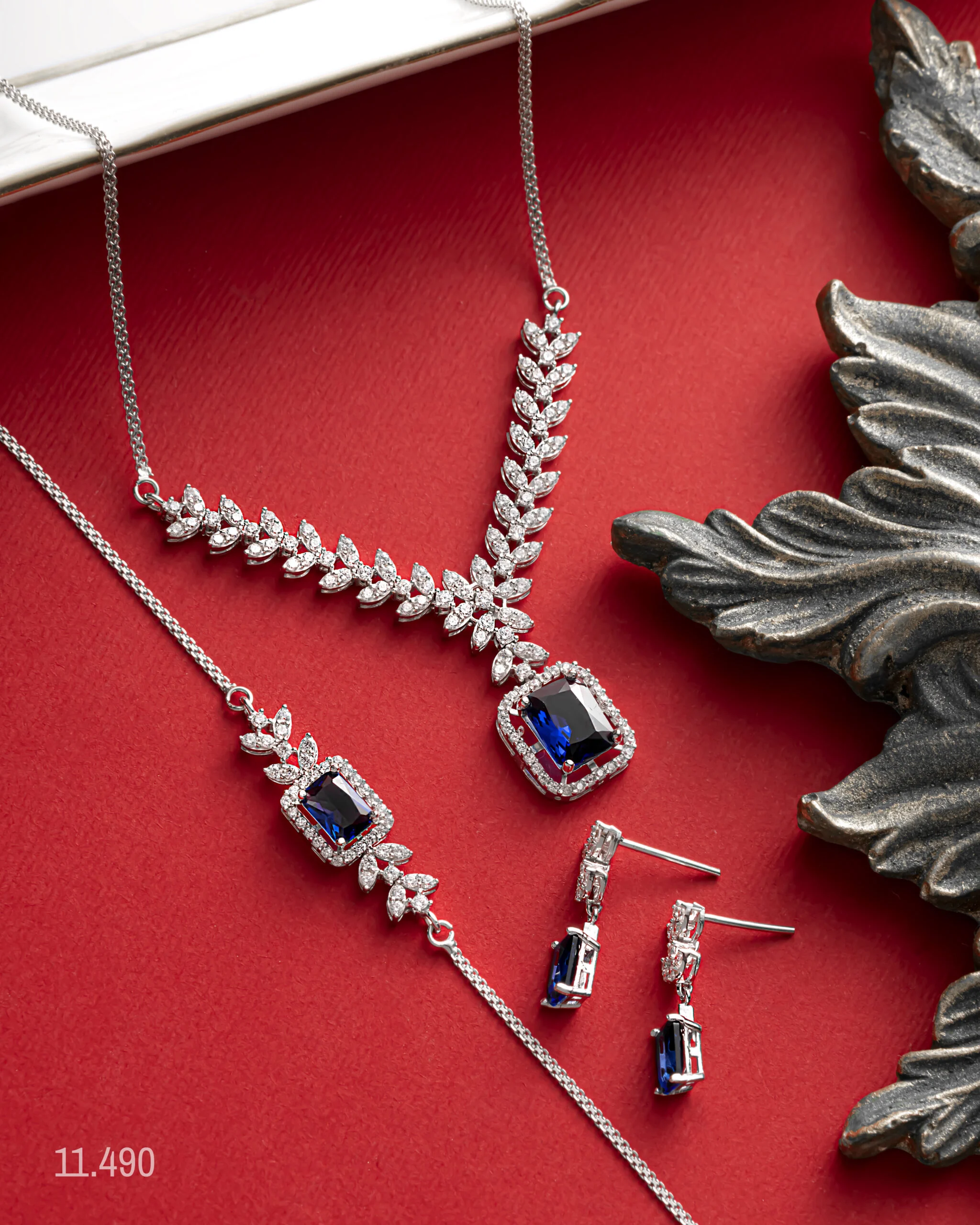 این ست بر پایه جواهرات مجلسی لاکچری که شامل گردنبند، گوشواره و دستبند است، با طراحی منحصر به فرد خود، جلوهای خیرهکننده به شما میبخشد. این مجموعه، انتخابی ایدهآل برای هدیه خاص تولد برای خانمها یا به عنوان سرویس عروس شیک و خاص است.این سرویس جواهر زنانه نگین درشت، ترکیبی بینظیر از ظرافت و شکوه است. گردنبند نگین مربعی آبی در مرکز آن، توجه هر بینندهای را به خود جلب میکند. گردنبند طرح برگ و سنگ آبی، با نگینهای اتمی درخشان ریز در اطراف سنگ اصلی، مانند الماسهای کوچک میدرخشد. گوشواره آویز با یاقوت کبود و دستبند سنگ آبی با طرح برگ، به صورت کاملاً هماهنگ با گردنبند طراحی شدهاند.