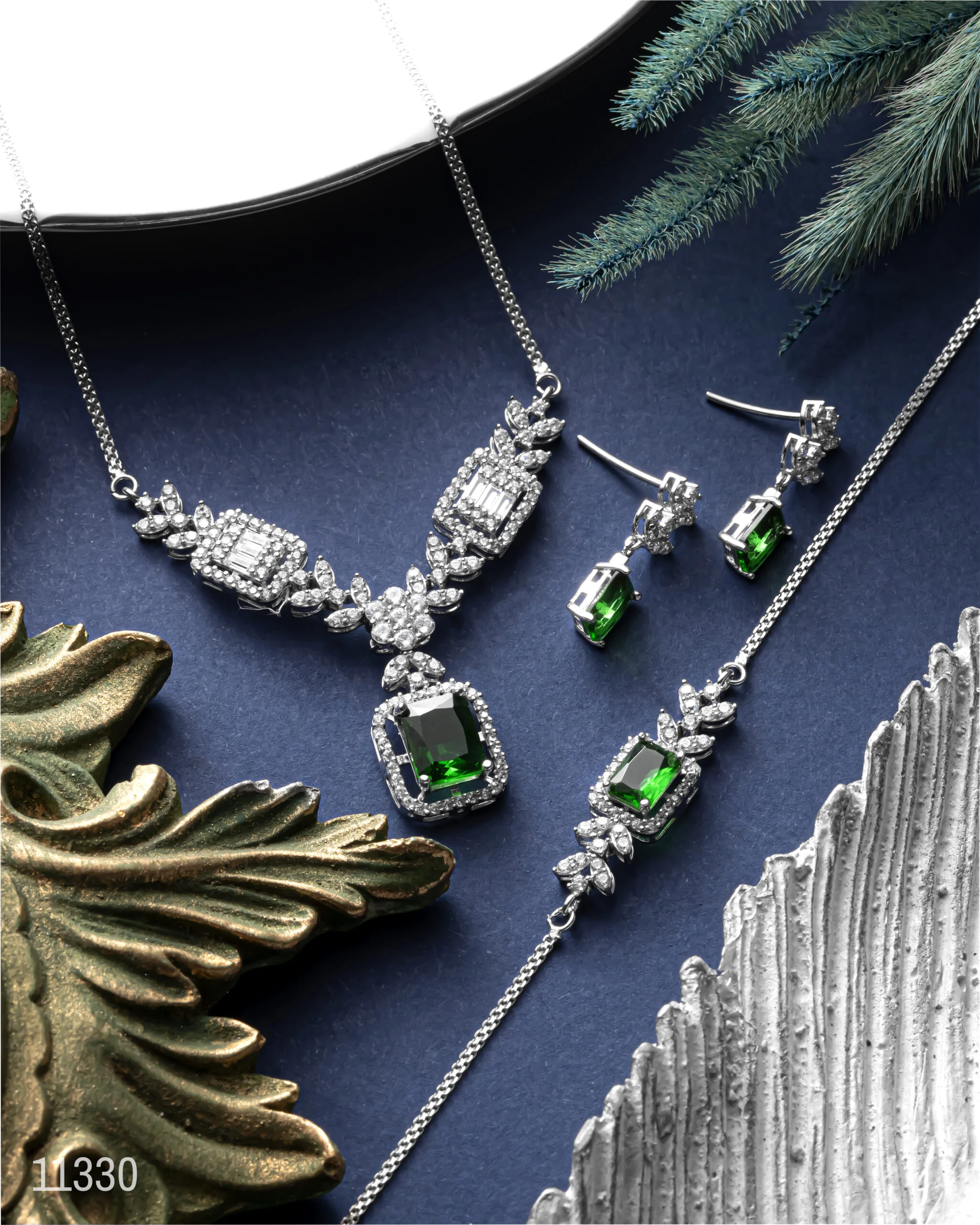نوع محصول:سرویس دوبعدی کامل بر پایه جواهر (گردنبند، گوشواره، دستبند).