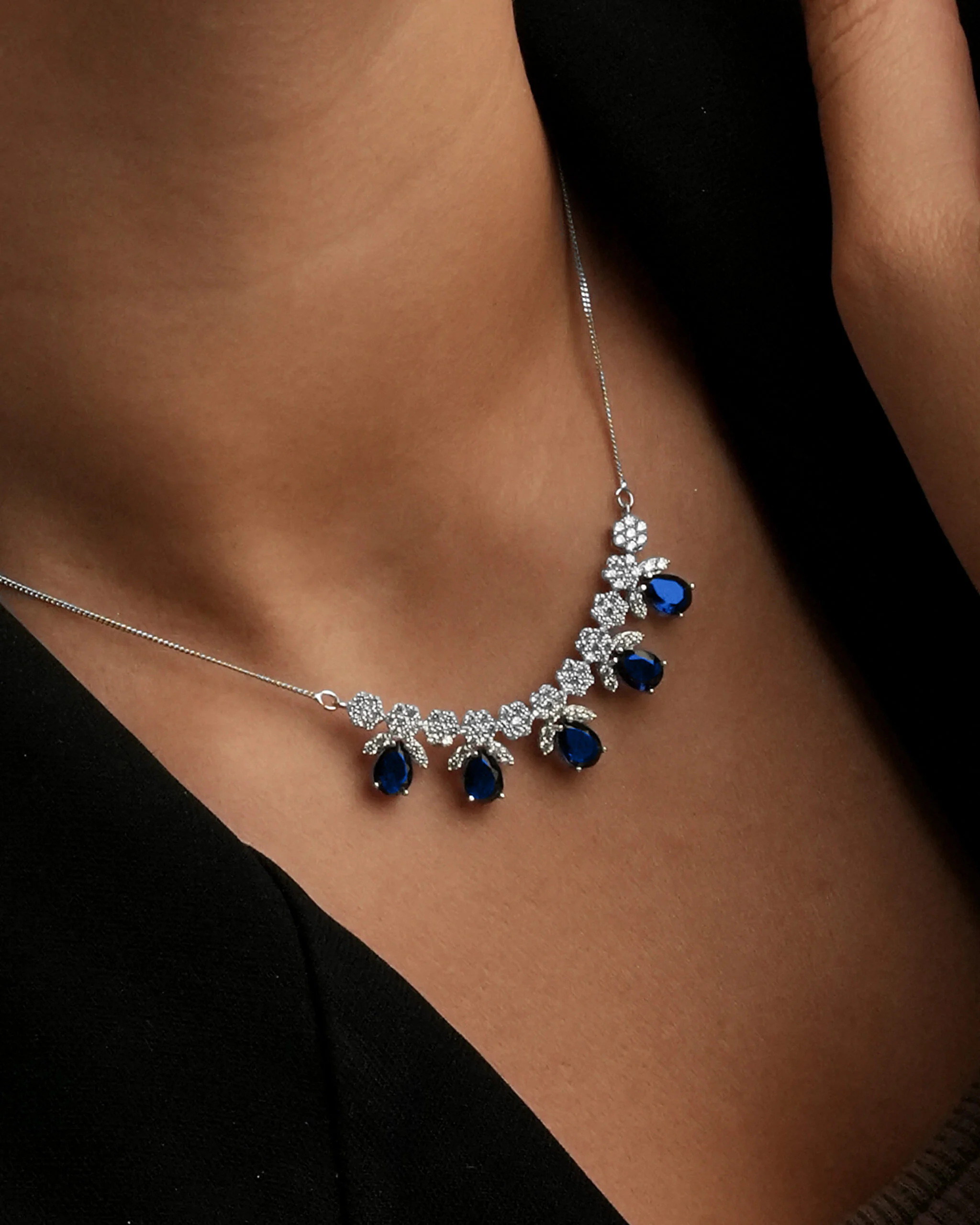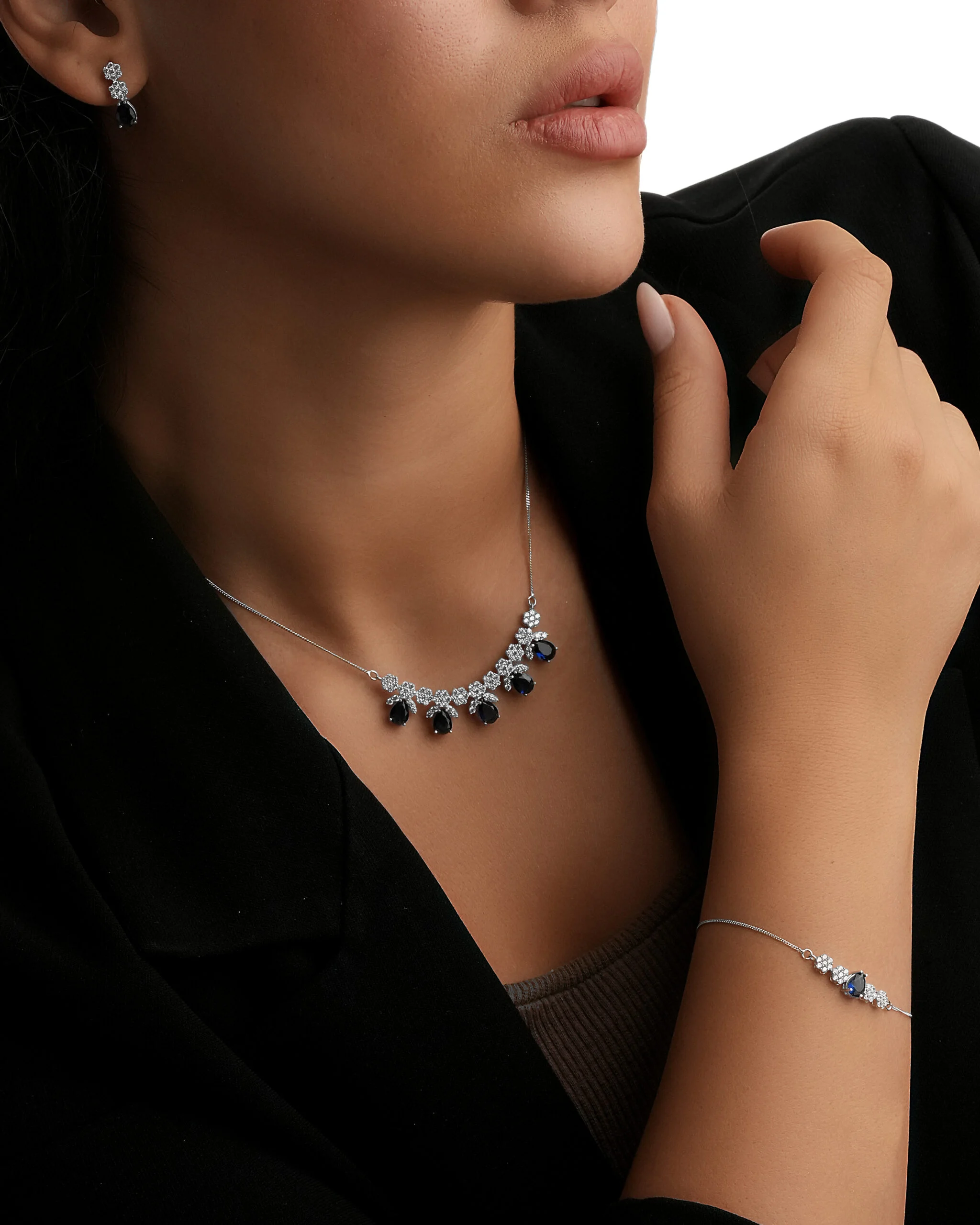زیبایی کلاسیک و اصیل را با این سرویس مجلسی بر پایه جواهر طلای سفید تجربه کنید. این ست نفیس، نمونهای برجسته از زیورآلات لوکس نگین طرح یاقوت کبود است که برای درخشش در شب طراحی شده. طراحی آن برگرفته از ست جواهر طرح قطرهای اشکی است که با ظرافتی بینظیر، نگینهای اتمی با کیفیت بالا را در بر گرفته است. گردنبند ظریف اتمی رنگ آبی کاربنی آن، با الگوی آویز چندگانه خود، جلوهای فاخر و در عین حال مدرن را به ارمغان میآورد. زنجیر سبک این سرویس، راحتی را در کنار زیبایی تضمین میکند. این جواهرات زنانه کلاسیک و فاخر شامل گردنبند، دستبند و گوشواره است که هر یک به تنهایی یک اثر هنری محسوب میشوند و انتخابی ایدهآل برای تکمیل استایلهای مجلسی و رسمی هستند.