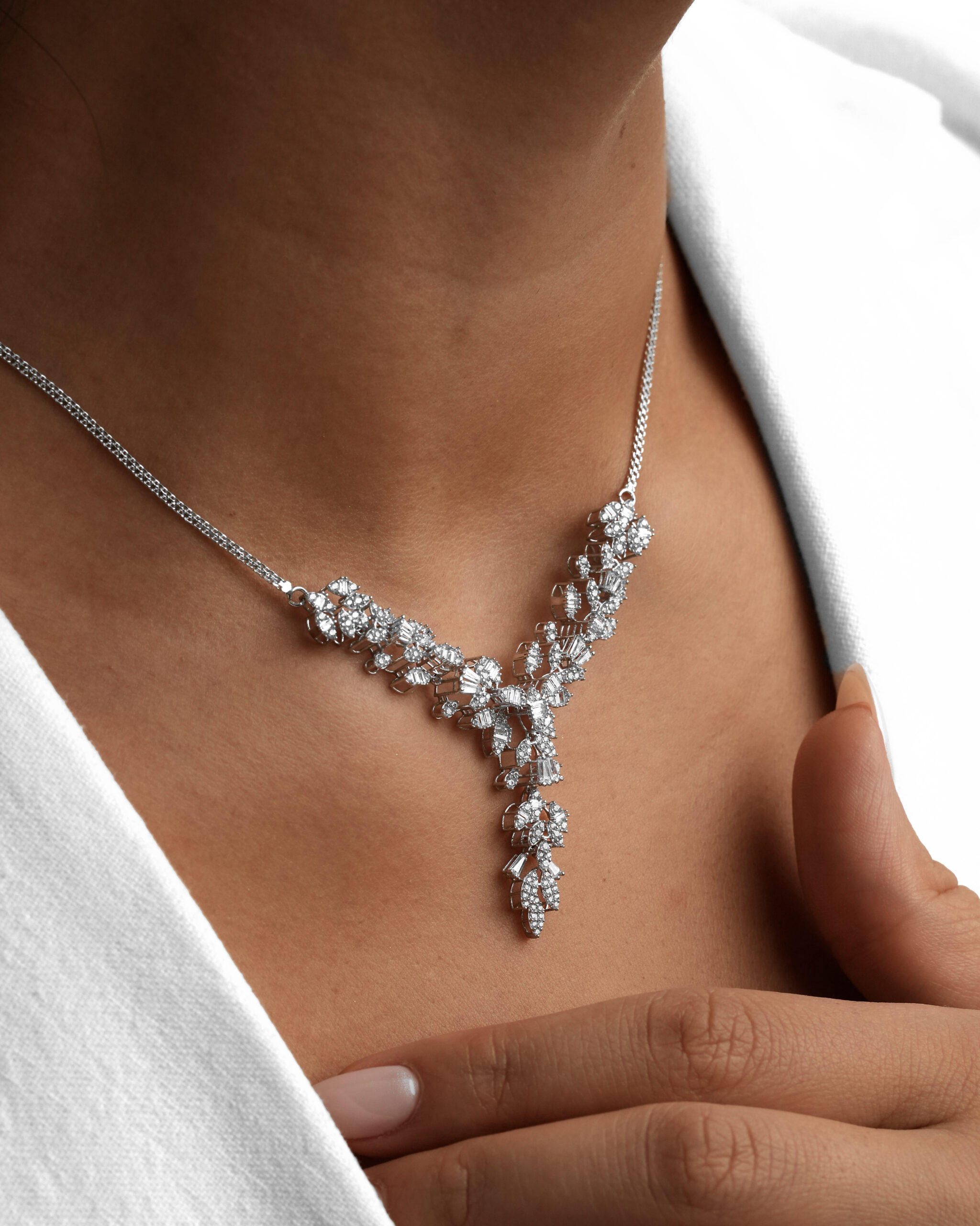 آیا به دنبال یک ست بر پایه جواهری مینیمال هستید که زیبایی کلاسیک را با طراحی مدرن ترکیب کند؟ سرویس سه بعدی طلا سفید ارائهشده در این محصول، انتخابی بینظیر برای شماست. این ست لوکس که بر پایه ظرافت جواهرات عروس نگین اتمی طراحی شده، با بهرهگیری از تکنیکهای پیشرفته سهبعدیسازی، جلوهای فوقالعاده و چشمنواز را به ارمغان میآورد. این محصول با استفاده از نگین اتمی درخشان، کیفیتی مثالزدنی و درخشش خیرهکننده مشابه الماس را با قیمتی مقرونبهصرفه فراهم میکند.این سرویس شامل یک گردنبند Y شکل زنانه با طراحی خاص است که بهخوبی روی خط گردن مینشیند و جلوهای شاهانه ایجاد میکند. همچنین، گوشواره و دستبند شاخهای با طراحی ظریف فلورال تکمیلکننده این ست هستند. این الگو که یادآور شاخه زیتون یا برگهای ظریف است، حس آرامش و زیبایی طبیعی را منتقل میکند. این ست مجلسی بهعنوان یک انتخاب بینظیر در میان زیورآلات لوکس زنانه سفید، مناسب مراسمهای خاص، نامزدی، عقد یا هدیهای ارزشمند و ماندگار است. با انتخاب این سرویس نگین اتمی درخشان، در هر جمعی بدرخشید.