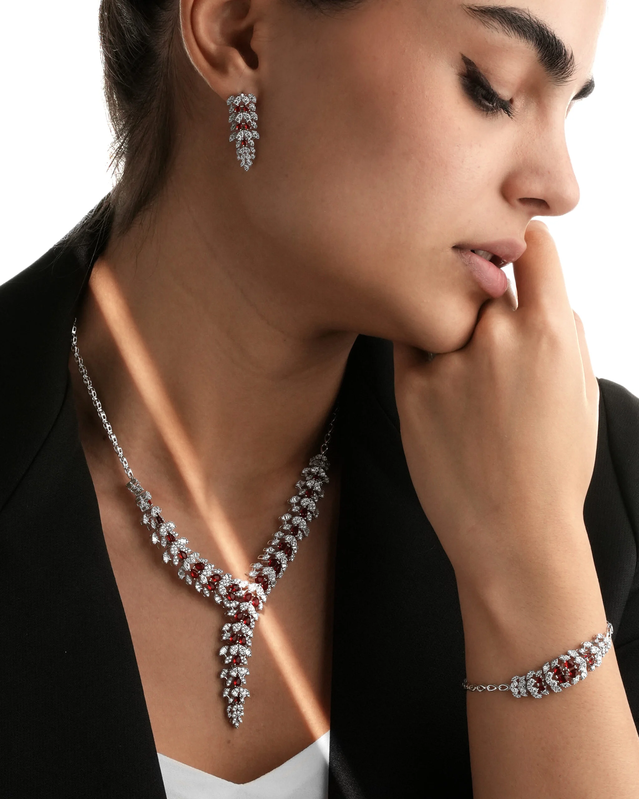 ​نوع محصول: سرویس بر پایه جواهر سه بعدی (گردنبند، گوشواره، دستبند).