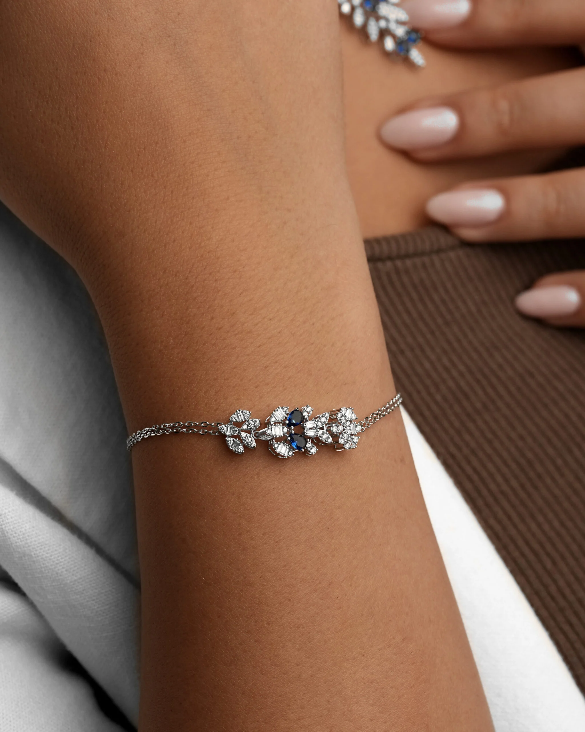این سرویس طلا سفید سهبعدی یک اثر هنری بینظیر است که برای مجالس و مناسبتهای خاص طراحی شده است. طراحی سهبعدی و ظریف این سرویس، که شامل گردنبند، گوشواره و دستبند است، عمق و جلوهای استثنایی به آن بخشیده است. ترکیب درخشان طلای سفید ۱۸ عیار با نگینهای با کیفیت، به ویژه نگینهای آبی تیره که جلوه بصری خاصی ایجاد میکنند، این سرویس جواهری را به انتخابی ایدهآل برای بانوانی تبدیل میکند که به دنبال زیورآلات مجلسی با شکوه و ماندگار هستند. طراحیخوشه ای مانند و ارگونومیک قطعات، راحتی و زیبایی را همزمان برای شما به ارمغان میآورد. با خرید این ست کامل طلا و جواهر، در هر جمعی بدرخشید و شکوهی بینظیر را تجربه کنید.