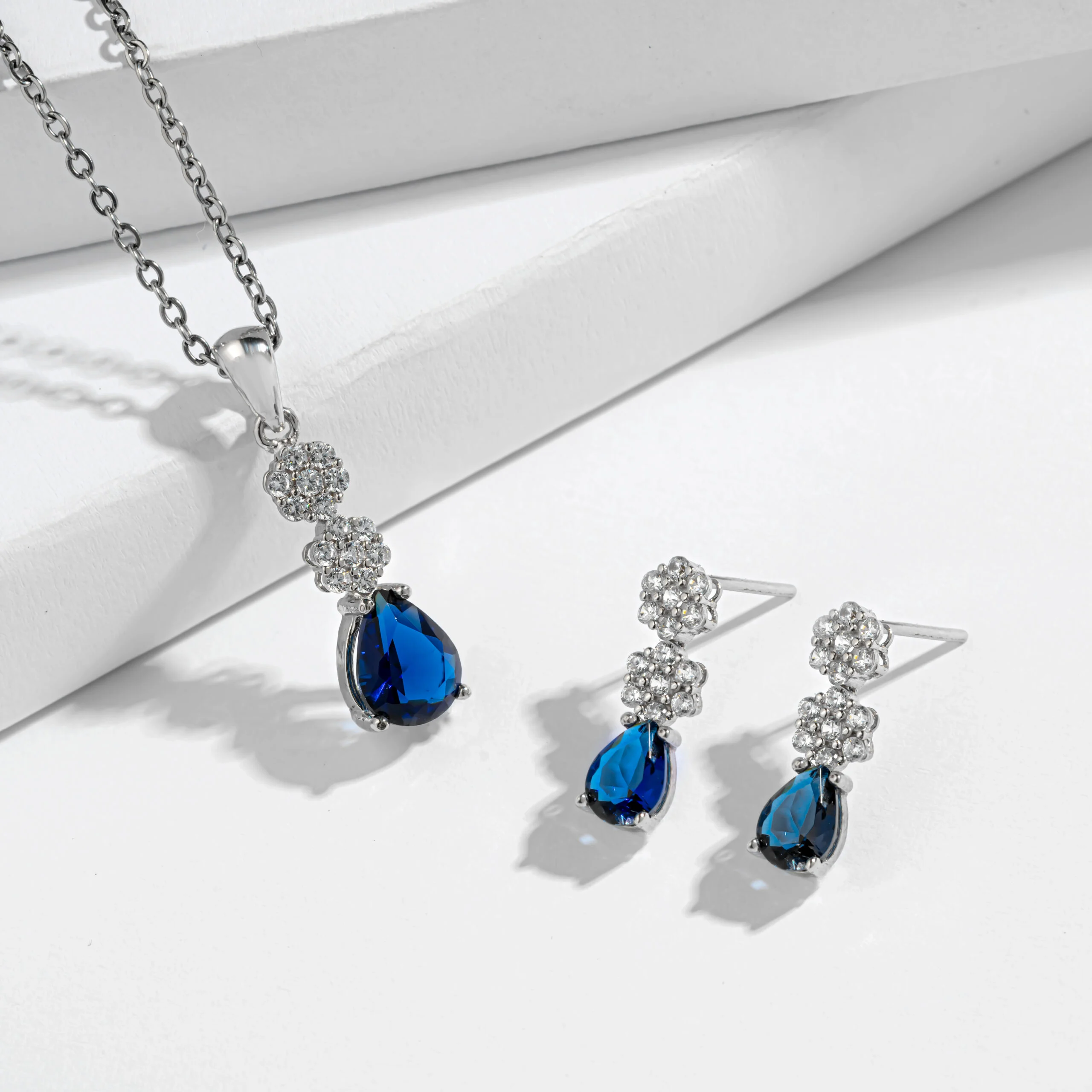 این نیمست بر پایه جواهر، ترکیبی خیرهکننده از ظرافت کلاسیک و درخشش مدرن است. با طراحی آویز اشکی کلاسیک و نگین طرح یاقوت کبود، این محصول به زیبایی هرچه تمامتر بر گردن شما مینشیند و جلوهای از شکوه و اصالت را به نمایش میگذارد. نگین این مجموعه، یک طرح یاقوت کبود تراشخورده به شکل قطره اشک است که با نگینهای درخشان و کوچک اتمی احاطه شده تا بازتابی بینظیر از نور را ایجاد کند. این سرویس جواهر با آویز قطره اشکی، نمادی از زیبایی جاودانه و مدرن است که میتواند یک ست هدیه زنانه و خاص برای عزیزان شما باشد و احساسی از شکوه و اصالت را به آنها هدیه دهد.