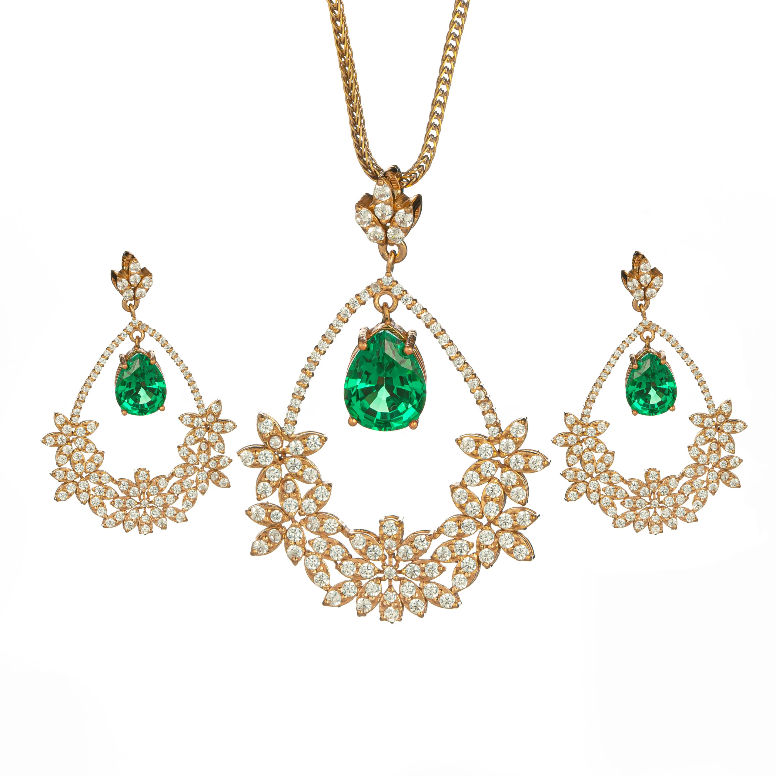 نیم ست بر پایه جواهر ما، تلفیقی بی‌نظیر از هنر و طبیعت، درخششی جاودانه را به شما هدیه می‌دهد. این نیم ست فاخر با طراحی گلبرگ و آویز اشکی طرح زمرد، بهترین انتخاب برای بانوانی است که به دنبال زیورآلات لوکس و مجلسی هستند. این محصول یک هدیه خاص و ماندگار است.