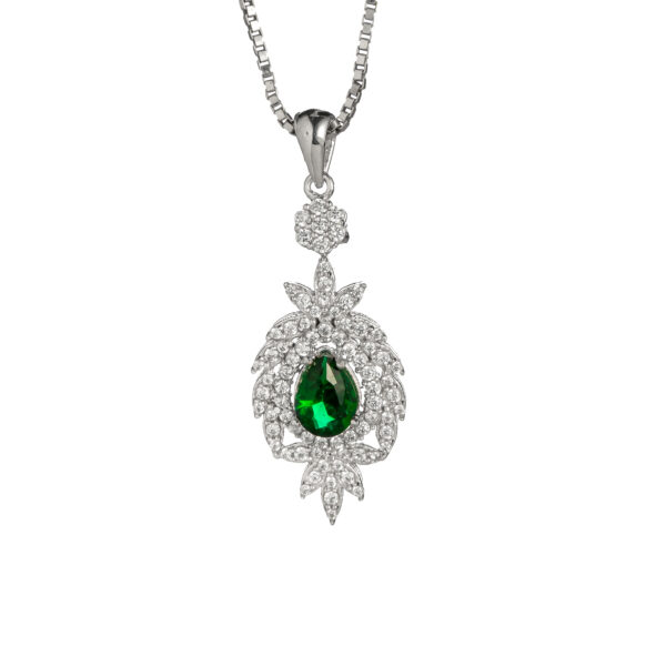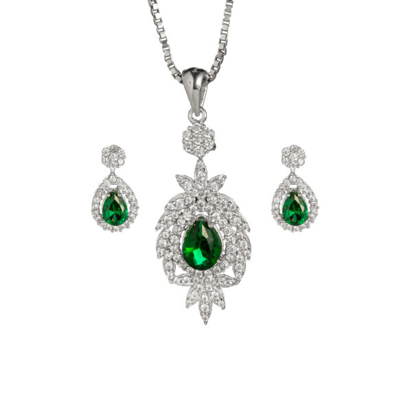 این نیمست بر پایه جواهر مجلسی لاکچری با طراحی کلاسیک و درخشان، نمادی از شکوه و زیبایی است. نیمست گردنبند و گوشواره طرح سلطنتی ما با نگینهای درخشان و تراشهای دقیق، گزینهای بینظیر برای خانمهای شیکپوشی است که به دنبال زیورآلات کلاسیک با طراحی ظریف برای مهمانیهای رسمی و مراسم خاص هستند.در مرکز هر قطعه، یک نگین طرح زمرد اشک با تراشی دقیق قرار گرفته که با درخشش خاص خود، نگاهها را به خود جذب میکند. اطراف این نگینها با نگین های اتمی براق و ریز تزیین شده است که در کنار هم، جواهرات زمردین با نگینهای اتمی را به یک انتخاب لوکس تبدیل میکنند.