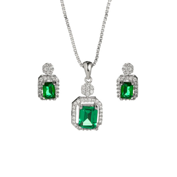 ​این نیم ست بر پایه جواهر طرح زمردی کلاسیک، نمادی از ظرافت و لوکس بودن است که با الهام از طراحی‌های سلطنتی خلق شده است.نگین طرح زمرد سبز در مرکز هر قطعه، در قابی از طرح باگت اتمی قرار گرفته‌اند که تلالو خیره‌کننده‌ای را به وجود می‌آورد. هر قطعه از این مجموعه، با دقت و ظرافت تمام ساخته شده تا زیبایی بی‌زمان را برای شما به ارمغان بیاورد.