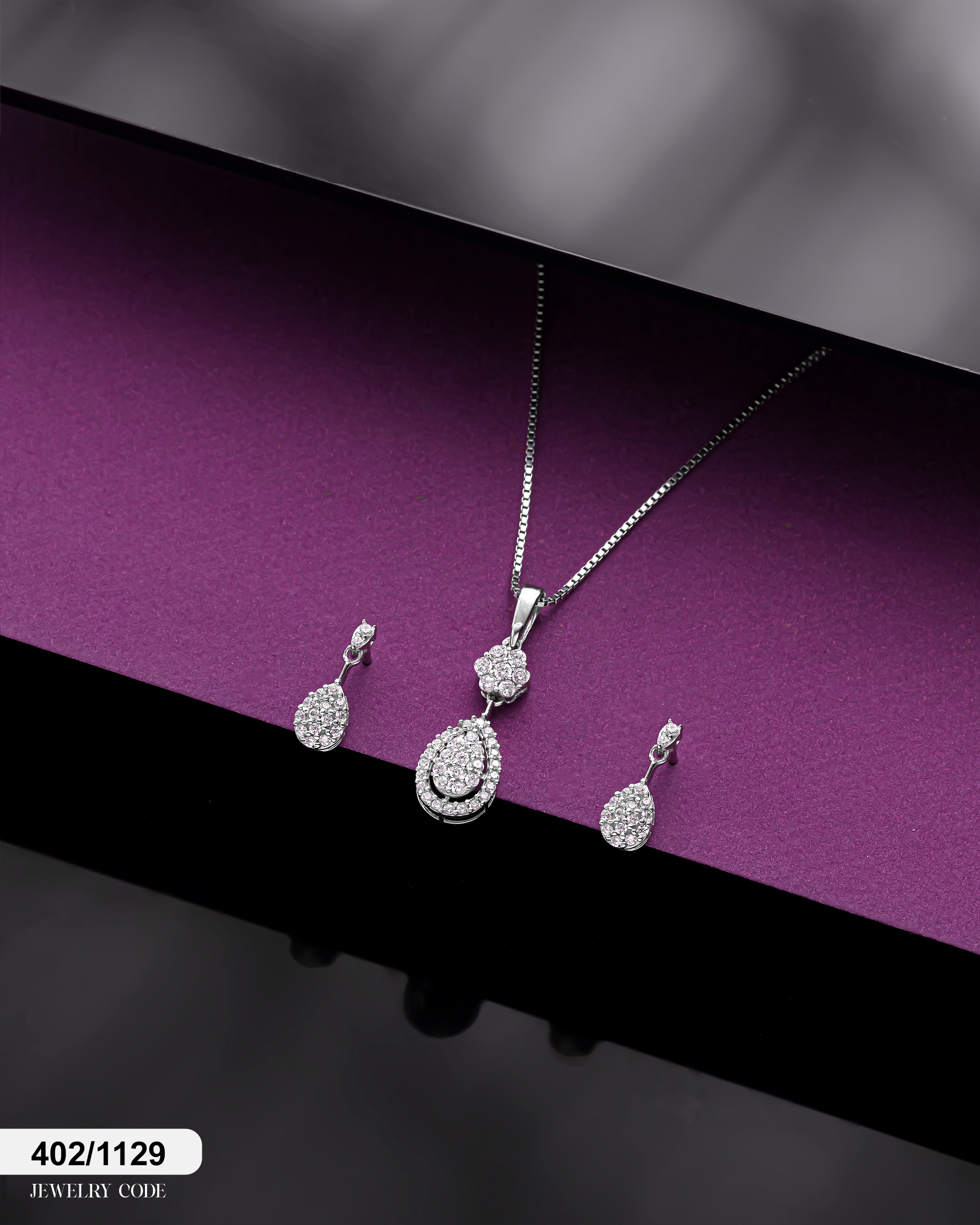 نوع محصول: نیم ست بر پایه جواهر دو بعدی (گردنبند، گوشواره).
