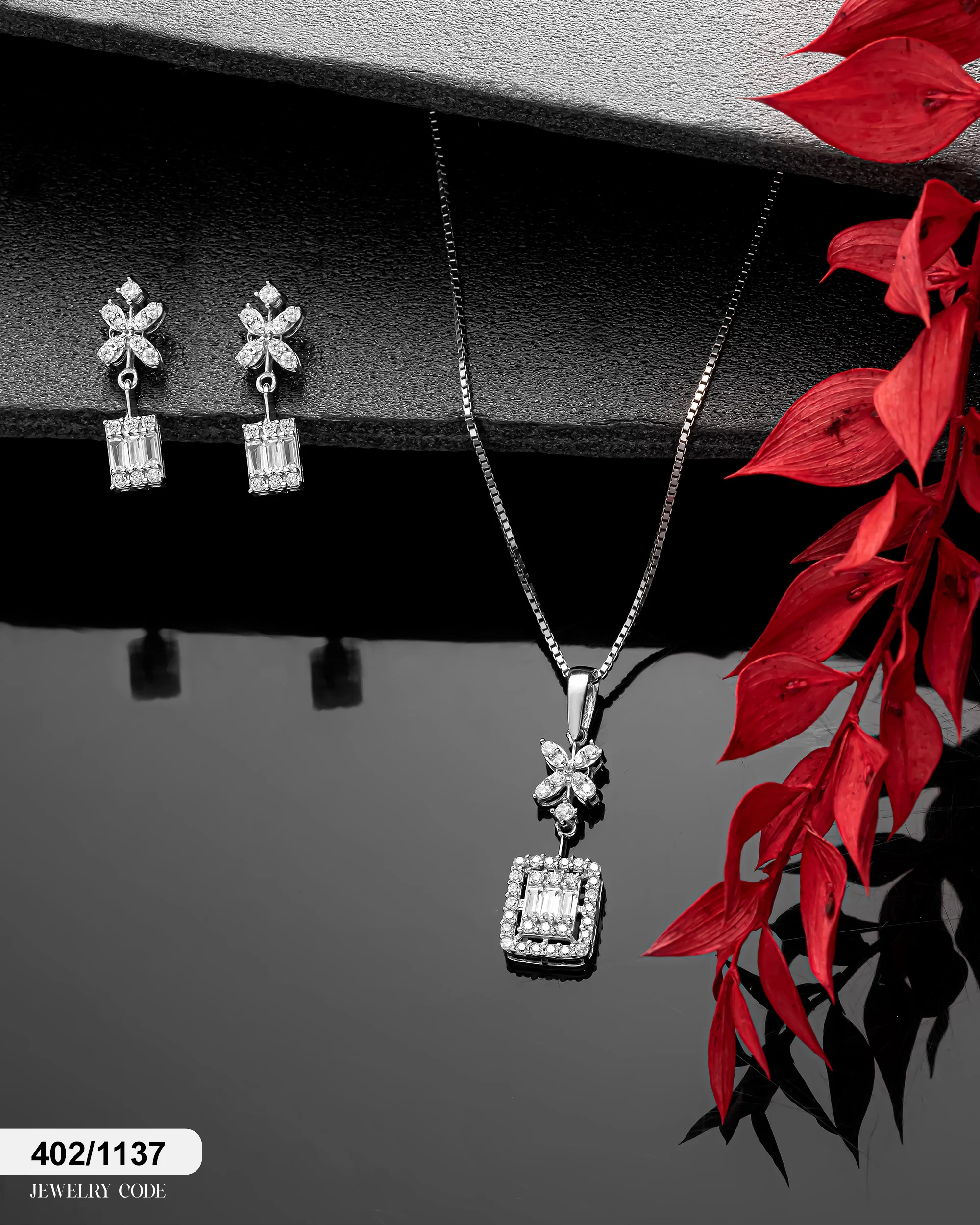 نوع محصول: نیم ست بر پایه جواهر دو بعدی (گردنبند، گوشواره).