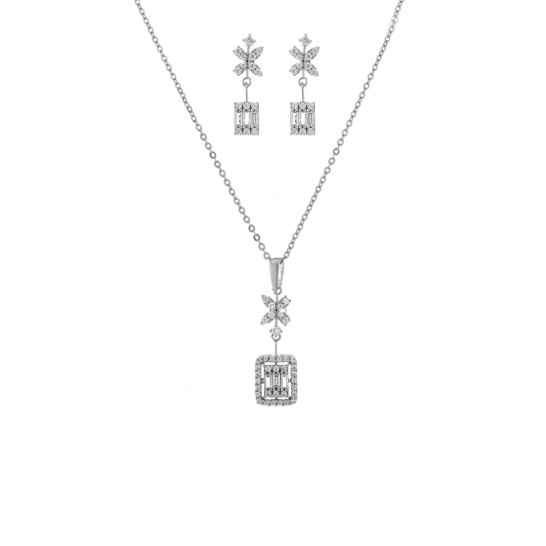 این نیمست بر پایه جواهر با طراحی بینظیر و خیرهکننده، انتخابی ایدهآل برای تکمیل استایلهای شیک و مدرن شماست. ترکیب منحصر به فرد طرح گل و مکعب، این سرویس جواهر ظریف را از نمونههای مشابه متمایز میکند. هر قطعه از این ست، شامل یک آویز گردنبند و یک جفت گوشواره آویز، با دقت و ظرافت تمام ساخته شده و با نگینهای اتمی درخشان تزئین گشته است. این این نیم ست بر پایه جواهرات مکعبی با انعکاس نور خیرهکننده، هر نگاهی را به خود جذب میکنند و جلوهای لوکس و مینیمال به شما میبخشند.این ست مجلسی درخشان، با توجه به طراحی کلاسیک و در عین حال بهروز خود، برای هر مناسبتی از جمله مهمانیها، مراسمهای رسمی و حتی استفاده روزمره مناسب است. اگر به دنبال یک زیورآلات هدیهای خاص و به یادماندنی هستید، این نیمست یک گزینه بینقص است که گیرنده آن را شیفته خود خواهد کرد.