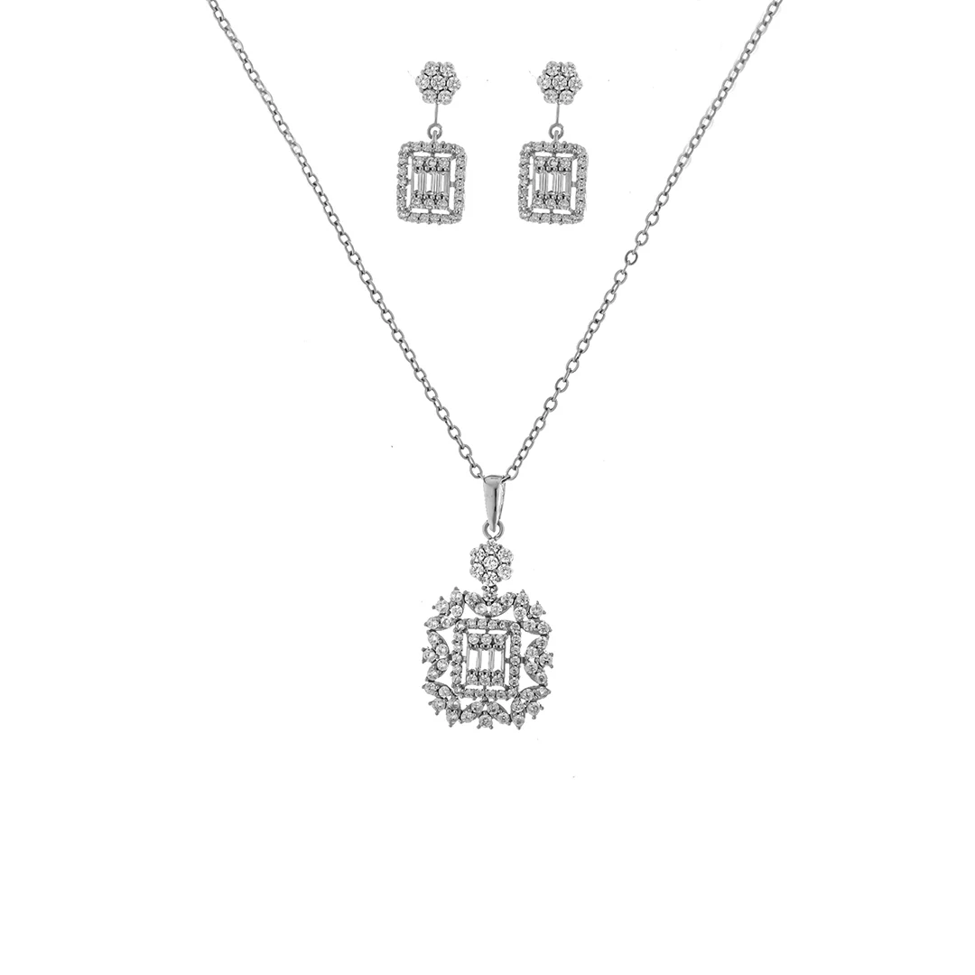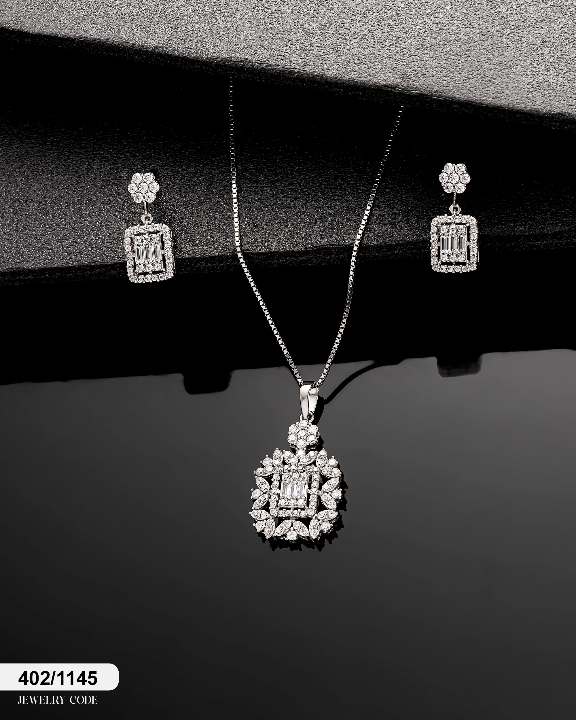 این نیم ست بر پایه جواهر نگینکاری شده با طراحی منحصر به فرد خود، زیبایی و درخشش خیرهکنندهای را به استایل شما میبخشد. زیورآلات مستطیلی و گلدار این ست، ترکیبی هنرمندانه از اشکال هندسی مدرن و ظرافت کلاسیک را به نمایش میگذارد. اگر به دنبال زیورآلات زنانه شیک برای مناسبتهای خاص هستید، این ست بر پایه جواهر درخشان و خیرهکننده انتخابی ایدهآل برای شماست.