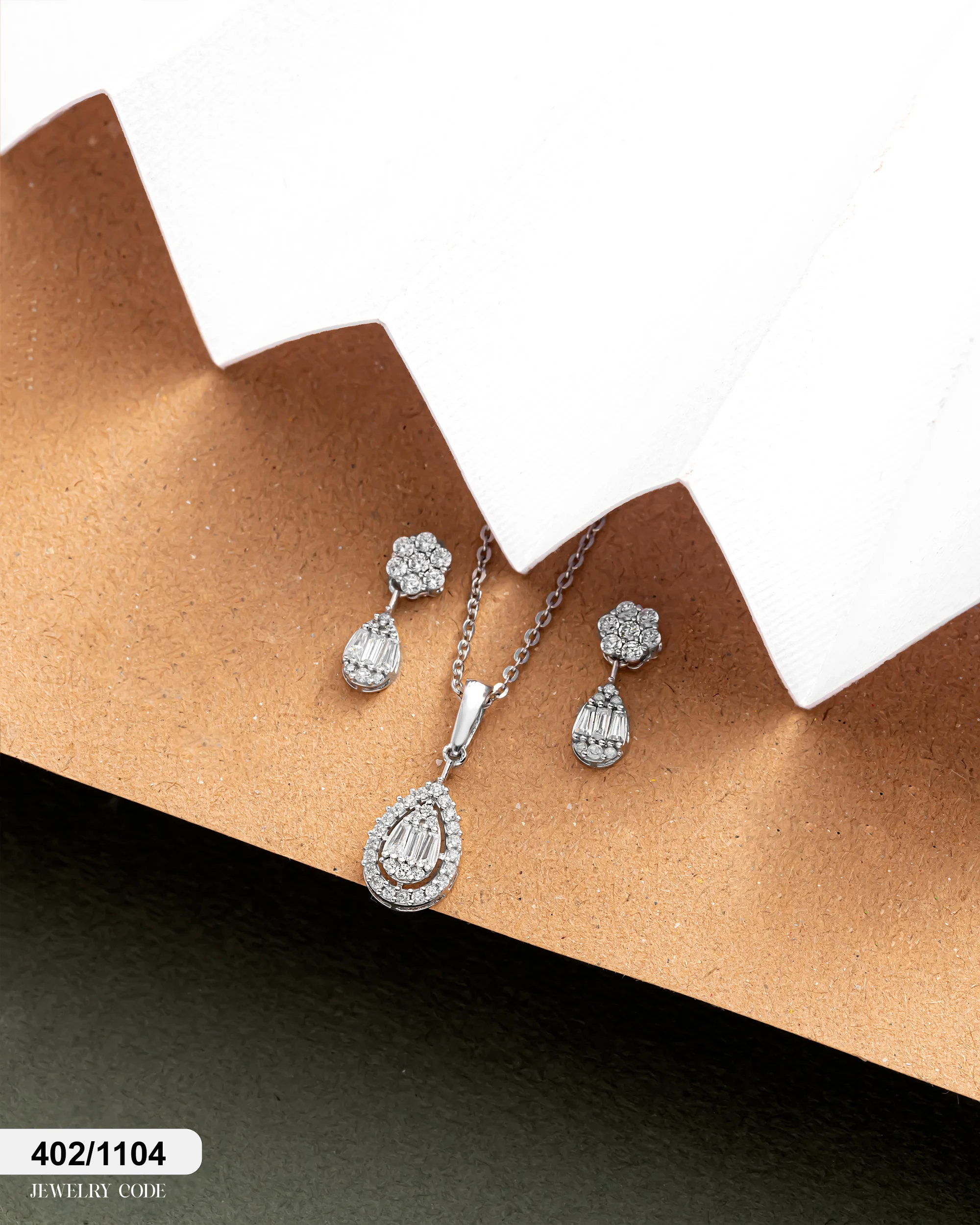 نوع محصول: نیم ست بر پایه جواهر دو بعدی (گردنبند، گوشواره).