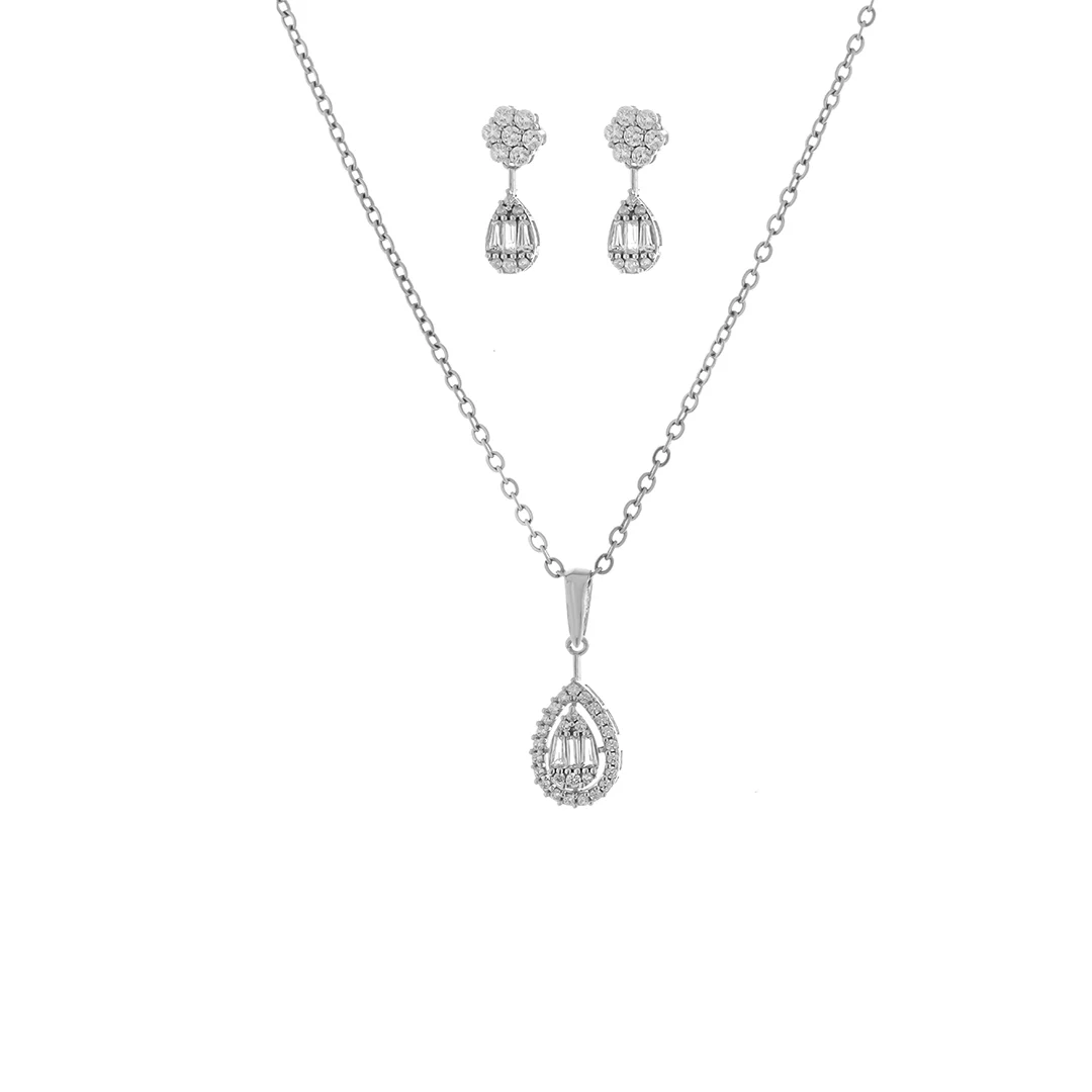این نیمست بر پایه جواهر لوکس و مینیمال، ترکیبی بینظیر از ظرافت و درخشش است که برای بانوان خاصپسند طراحی شده. سرویس جواهر گل و قطره اشکی شامل یک پلاک و یک جفت گوشواره است که با الهام از طبیعت، زیبایی گل و لطافت اشک را در هم آمیخته است. این سرویس جواهر زنانه مجلسی با درخشش خیرهکننده نگین اتمی درخشان، انتخابی ایدهآل برای تکمیل استایل شما در مهمانیها، مراسمها و به عنوان سرویس جواهر عروس است. این هدیه سرویس جواهر لوکس، هر نگاهی را به خود جذب میکند و حس زنانگی و شکوه را به شما میبخشد.