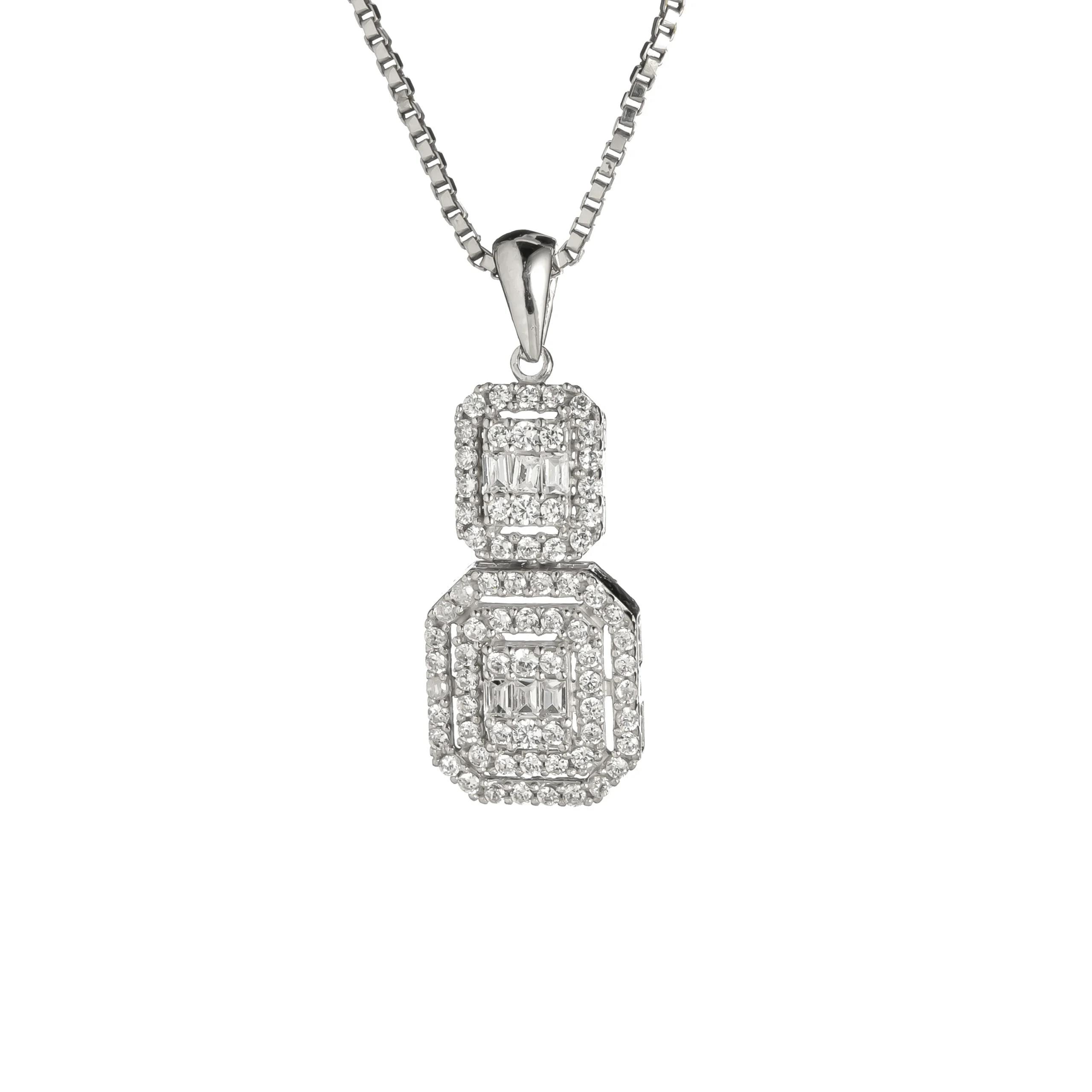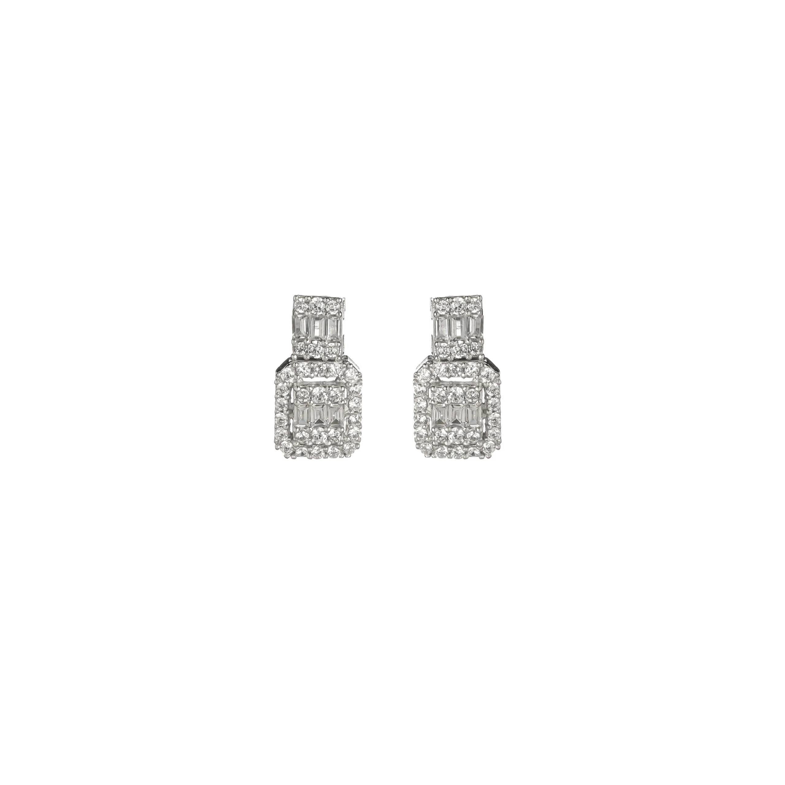 نیم ست برپایه جواهر ما، نمادی از زیبایی و ظرافت بیانتها است. این نیم ست طلای سفید که با دقت و هنرمندی طراحی شده، شامل یک گردنبند و گوشواره است که برای هر مناسبت خاصی درخشش بینظیری به شما میبخشند. طراحی گردنبند باگت این نیم ست، آن را از دیگر زیورآلات متمایز میکند. نگین های تراش باگت به شکل مستطیل در مرکز، و نگین اتمی درخشان گرد در اطراف، یک ترکیب خیرهکننده ایجاد کردهاند که توجه هر بینندهای را به خود جلب میکند. گوشوارههای مربعی این مجموعه، طراحی گردنبند را تکمیل کرده و هماهنگی کاملی بین اجزا برقرار میکنند. اگر به دنبال سرویس جواهر لوکس و زیورآلات مدرن هستید که جلوه خاصی به استایل شما ببخشد، این نیم ست بهترین انتخاب است. این محصول همچنین یک هدیه سالگرد شیک و به یادماندنی برای عزیزانتان خواهد بود.