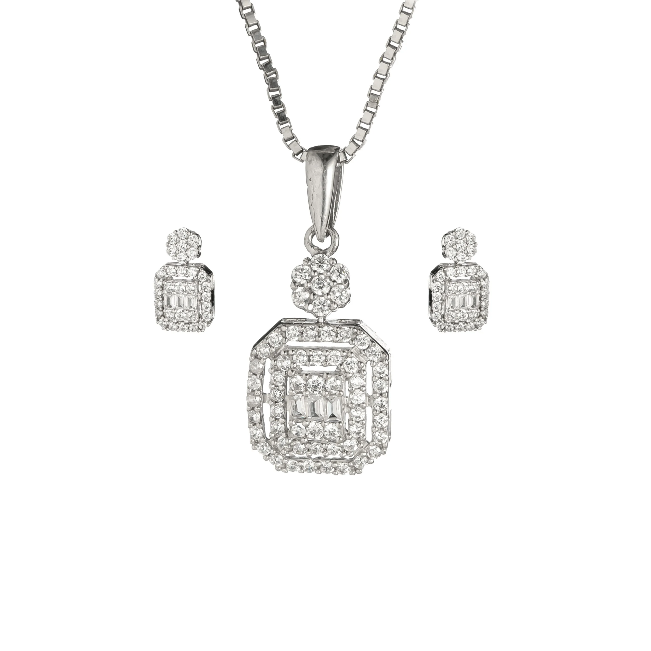 این نیمست بر پایه جواهر مدرن با طراحی بینظیر و هندسی خود، جلوهای از زیبایی و ظرافت را به نمایش میگذارد. این مجموعه شامل یک گردنبند پلاک مستطیلی الماس گونه و دو گوشواره طرح باگت است که با دقت و ظرافت تمام ساخته شدهاند. درخشش خیرهکننده سرویس اتمی درخشان که بر روی زمینه طلا سفید درخشان قرار گرفته، این نیمست را به انتخابی ایدهآل برای زیورآلات مجلسی و هدیه لوکس زنانه تبدیل میکند. زیبایی مینیمال و در عین حال لاکچری این جواهرات، آن را به یک اکسسوری ضروری برای هر بانوی شیکپوش تبدیل میکند.