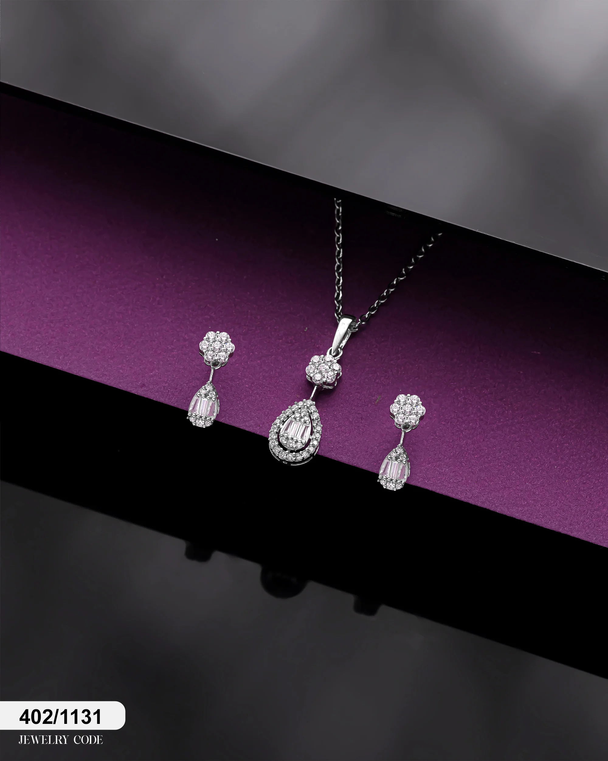 نوع محصول: نیم ست بر پایه جواهر دو بعدی (گردنبند، گوشواره).