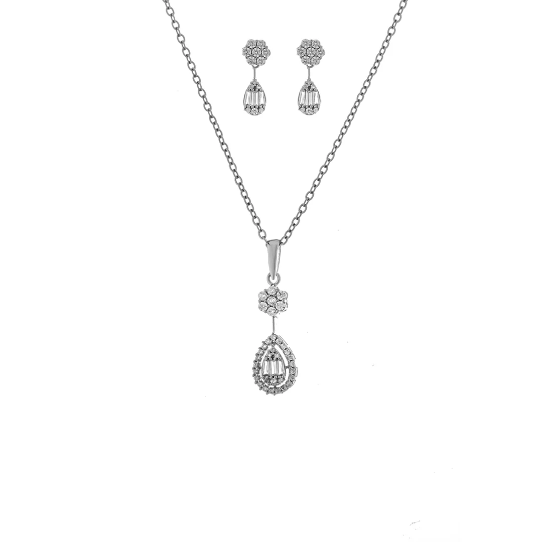 این نیمست بر پایه جواهر نفیس، ترکیبی از زیبایی و ظرافت است که با طراحی منحصر به فرد خود، هر بانویی را به ستاره مجالس تبدیل میکند. این نیم ست بر پایه جواهر لوکس، شامل یک گردنبند آویز و یک جفت گوشواره اشکی است که هر دو با نگینهای درخشان و سفید اتمی مزین شدهاند. طراحی جواهر مانند مجلسی این مجموعه، آن را به انتخابی ایدهآل برای مراسمهای خاص و مهمانیهای شبانه تبدیل میکند. هر قطعه از این سرویس جواهر با دقت و ظرافت تمام ساخته شده تا درخشش بینظیری را به شما هدیه دهد.