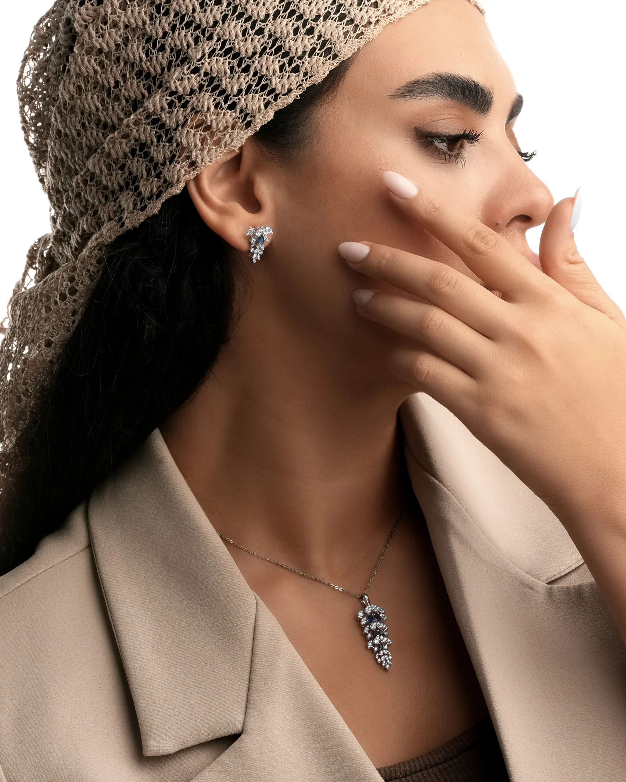 نوع محصول: نیم ست بر پایه جواهر سه بعدی(گردنبند و گوشواره).
