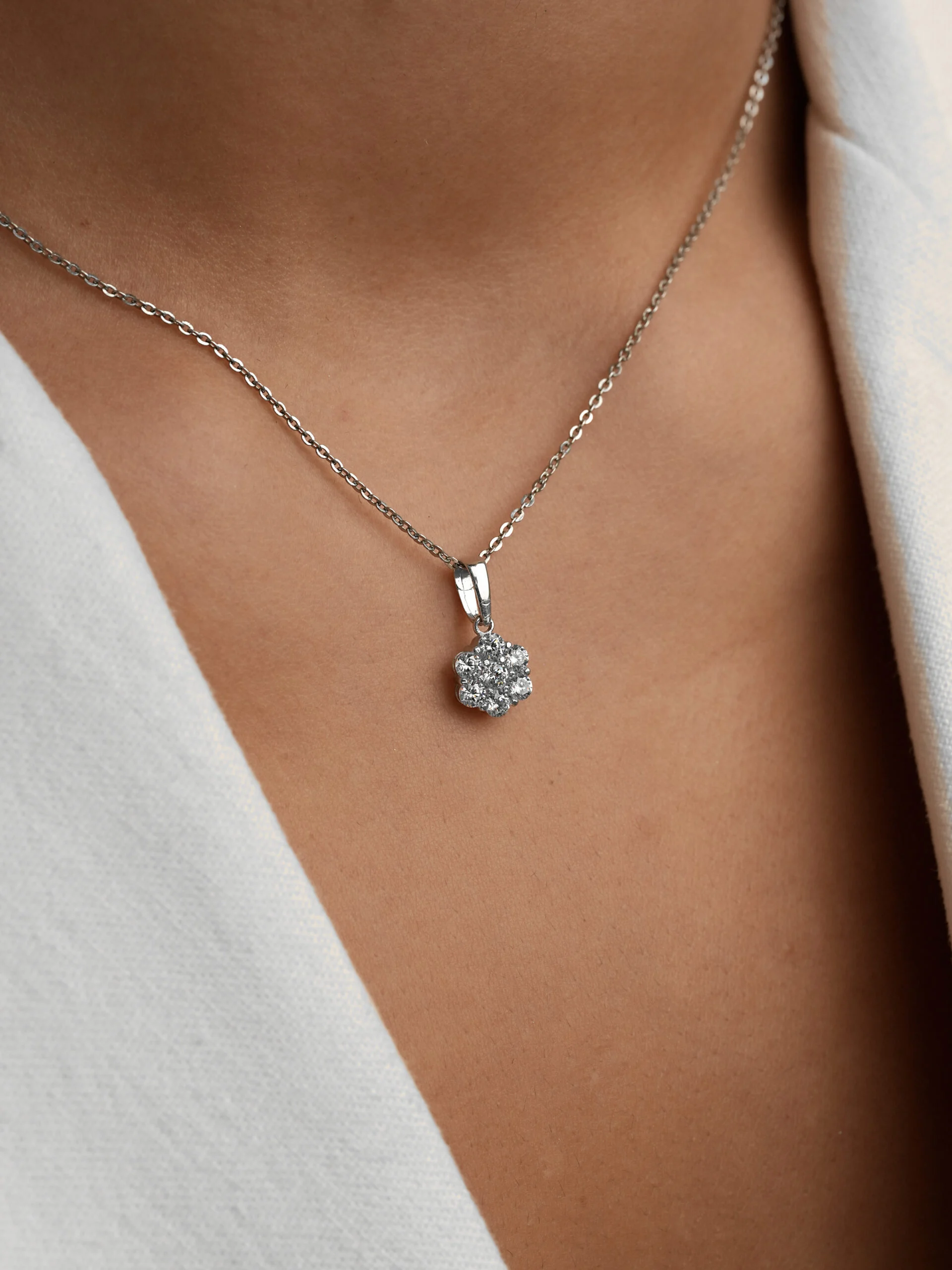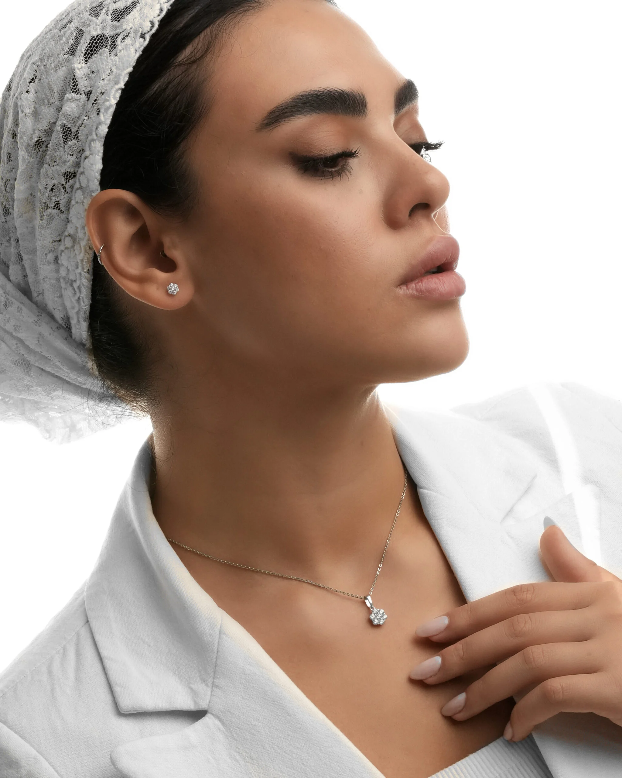 این ست نفیس، نمونه‌ای برجسته از زیورآلات مینیمال طرح جواهر است که با طراحی آویز تک بر پایه جواهر نگین فلاور و گوشواره میخی نگین اتمی، ظاهری لوکس و بی‌نقص را به ارمغان می‌آورد.​این نیم‌ست طلا سفید که با دقت و ظرافت بالا ساخته شده، انتخابی ایده‌آل برای بانوان سخت‌پسند است. نگین‌های (اتمی) به کار رفته در این مجموعه، با برش‌های دقیق، درخششی مشابه الماس دارند و جلوه‌ای لوکس و درخشان ایجاد می‌کنند.اگر به دنبال یک هدیه ارزشمند یا یک زیورآلات ماندگار برای شب عروسی هستید، این ست به عنوان یک ست عروس مدرن و شیک، قطعاً رضایت شما را جلب خواهد کرد.